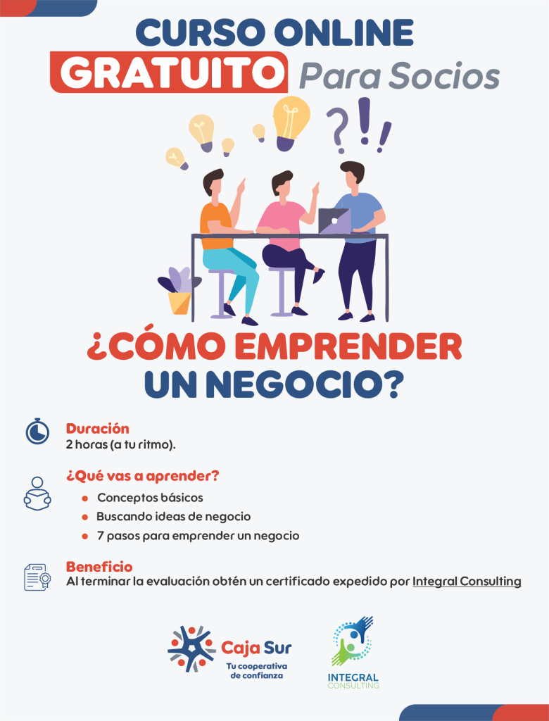 Los cursos online son diseñados por Integral Consulting. Si tienes algún comentario o sugerencia, ponte en contacto con nosotros a: mkt@cajasurdejalisco.com.mx o al 3714173961 ext.128