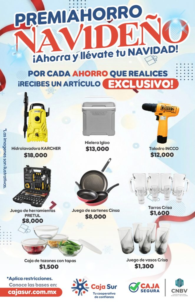 PREMIAHORRO NAVIDEÑO El Premiahorro Navideño es una promoción que tiene como objetivo promover el ahorro en los socios de Caja Sur mediante una dinámica, donde los socios depositan un monto en ahorro y como premio se llevan un artículo promocional. CONSULTA AQUÍ LAS BASES